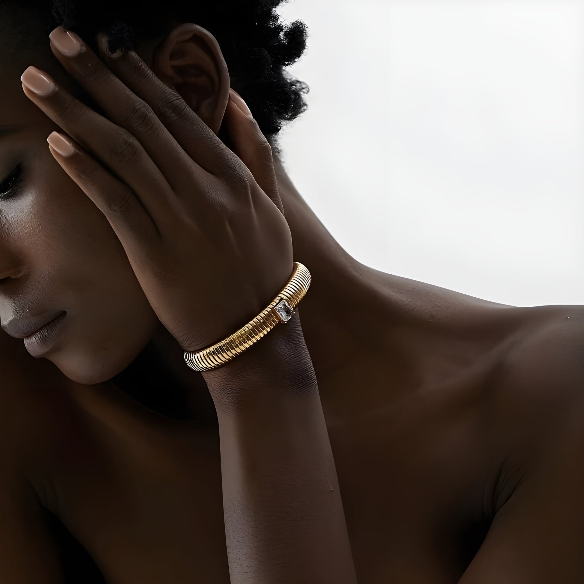 • Layer with intention: pair it with other slim bracelets—mix textures like braided leather or beaded tones—to create a rich, yet refined wrist stack.