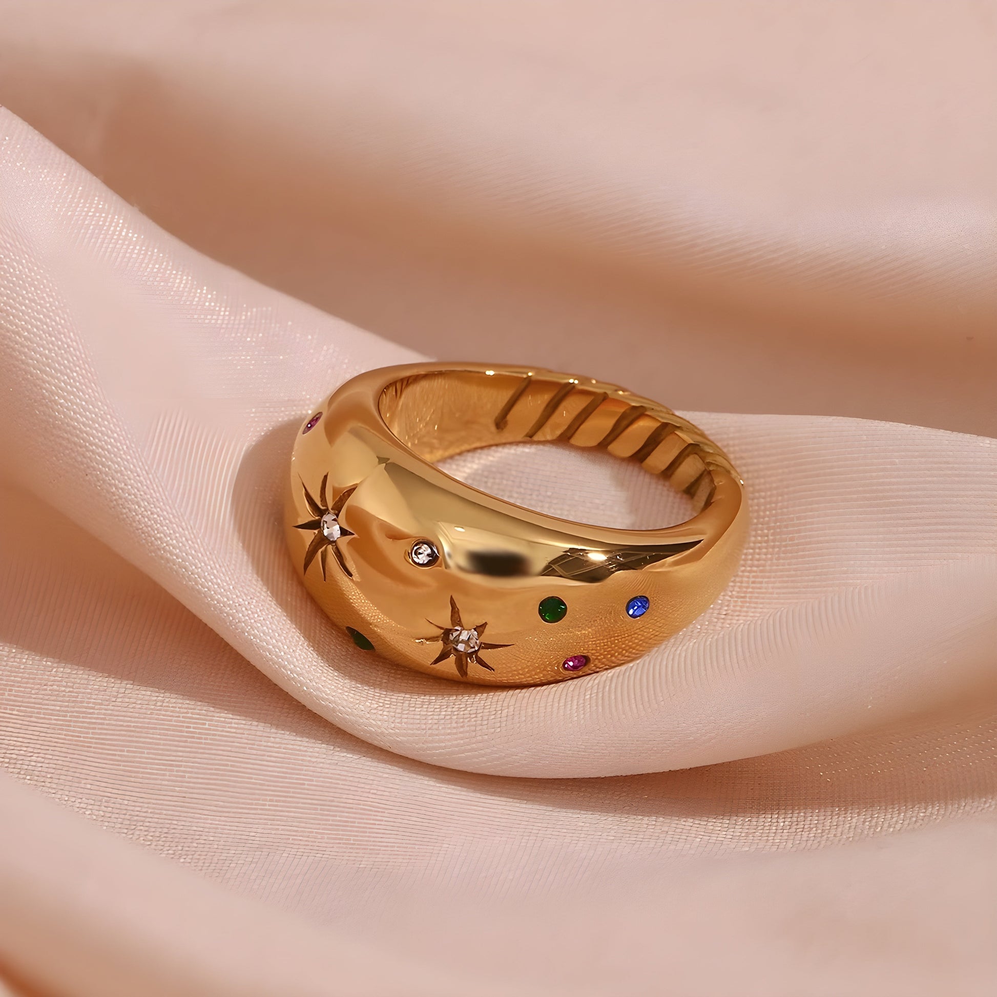 From a conceptual and stylistic perspective, this ring reflects a sense of cosmic beauty and radiant feminine power: