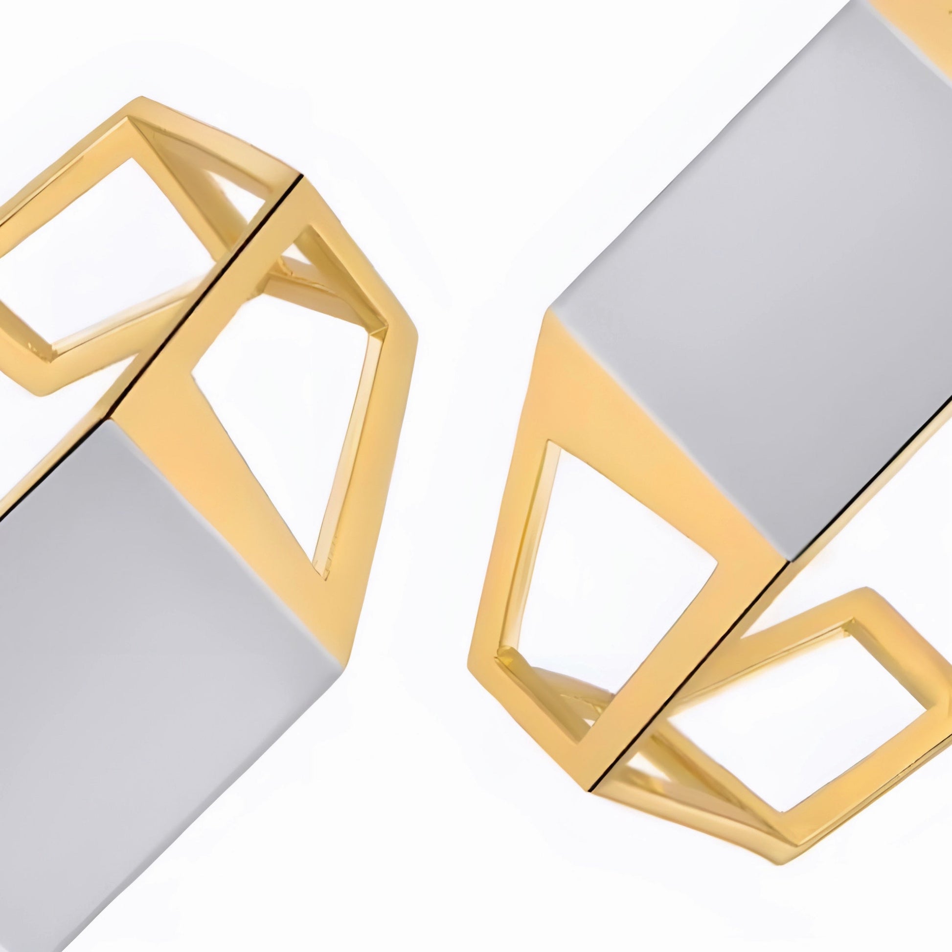 This bracelet, inspired by architecture and geometric design, represents the power of artistry in accessory creation. Its gold and silver color combination forms a unique, architectural-like piece under the light. It pairs perfectly with the matching earring from the same collection, creating a striking harmony of design and elegance.