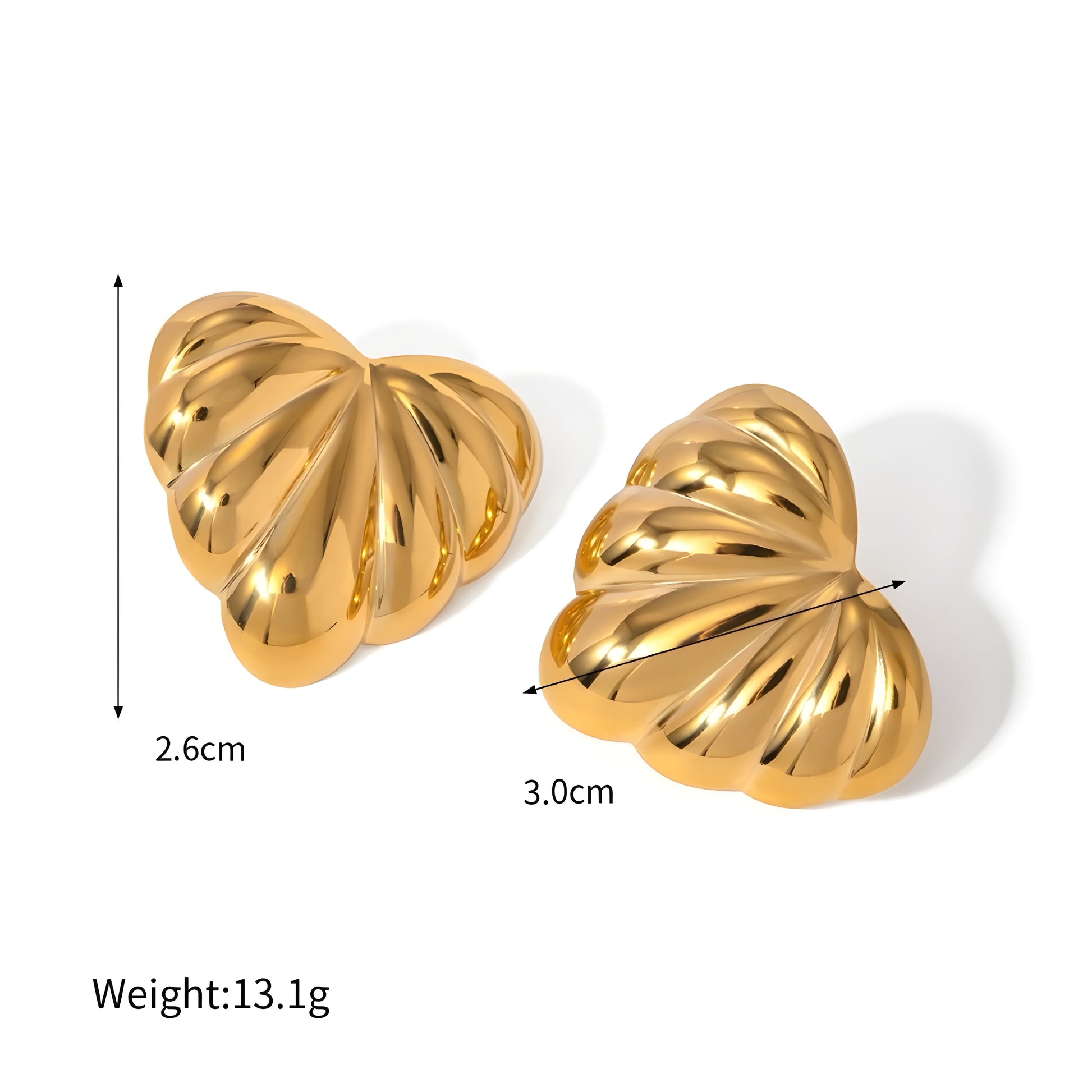 These gold earrings, designed in the shape of a leaf, exude both elegance and boldness. With a polished surface and asymmetrical form, they add a touch of nature-inspired sophistication to your style. Their voluminous, three-dimensional design makes them a statement accessory, bringing a luxurious and timeless appeal.