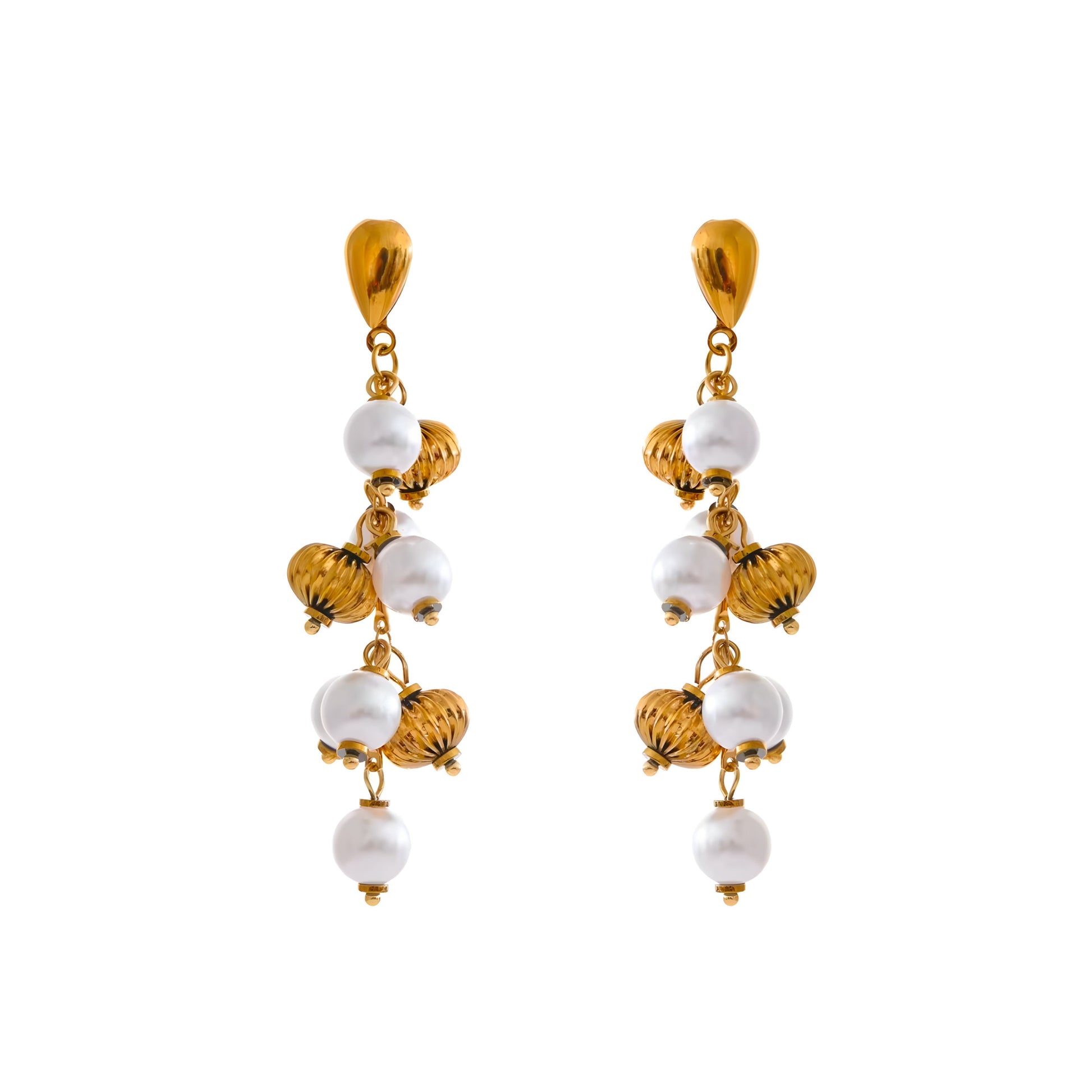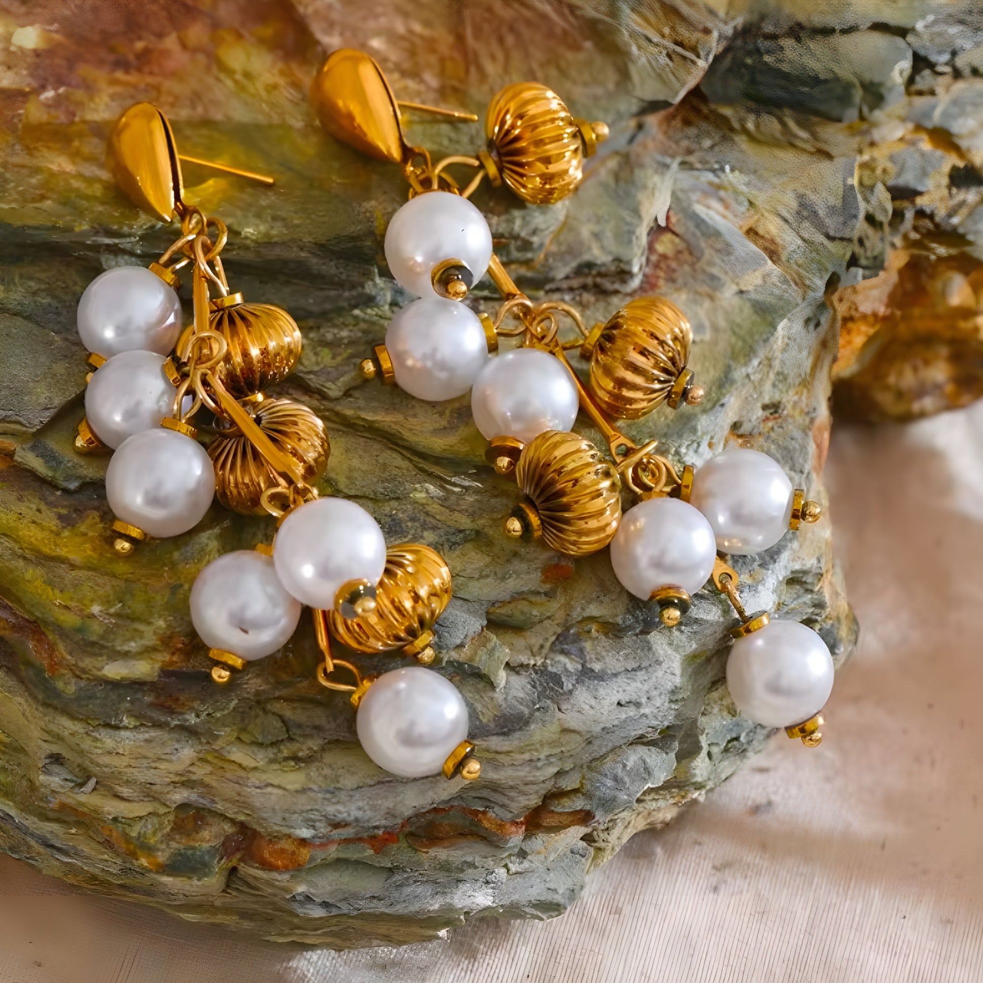 Title: Pearl and Gold Bead Drop Earrings A Unique Blend of Elegance and Modernity