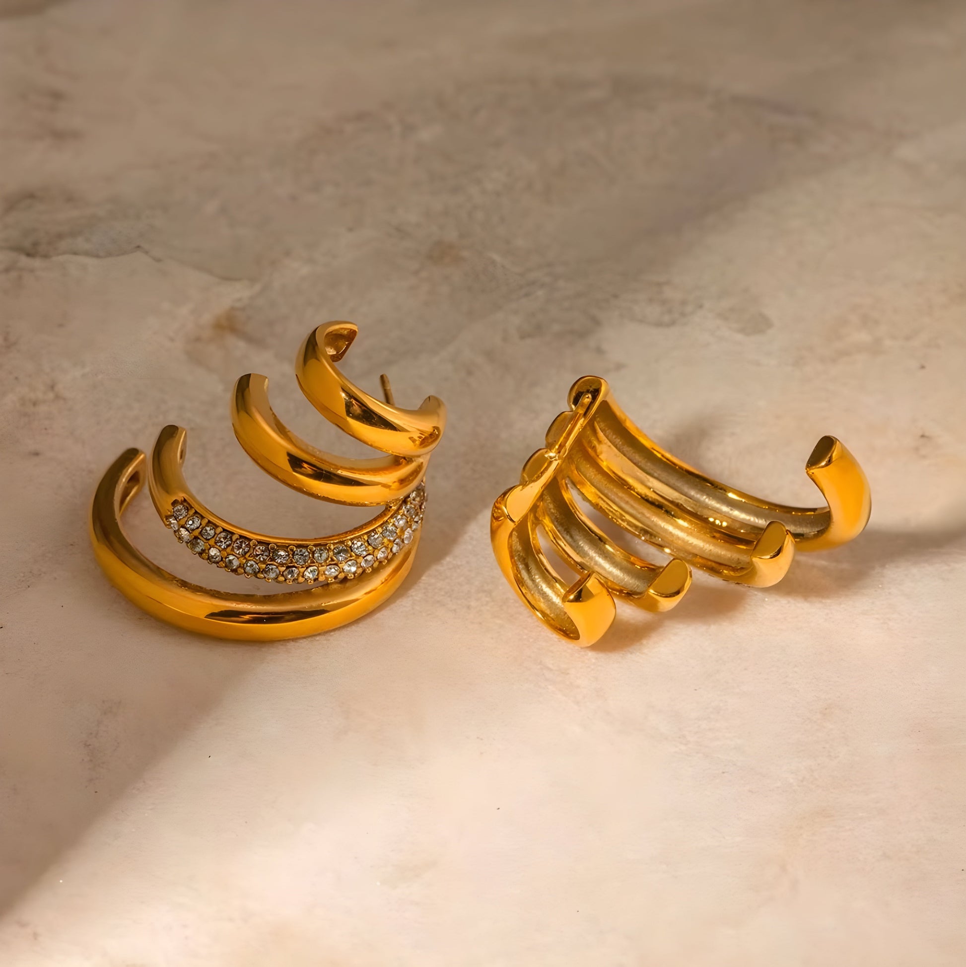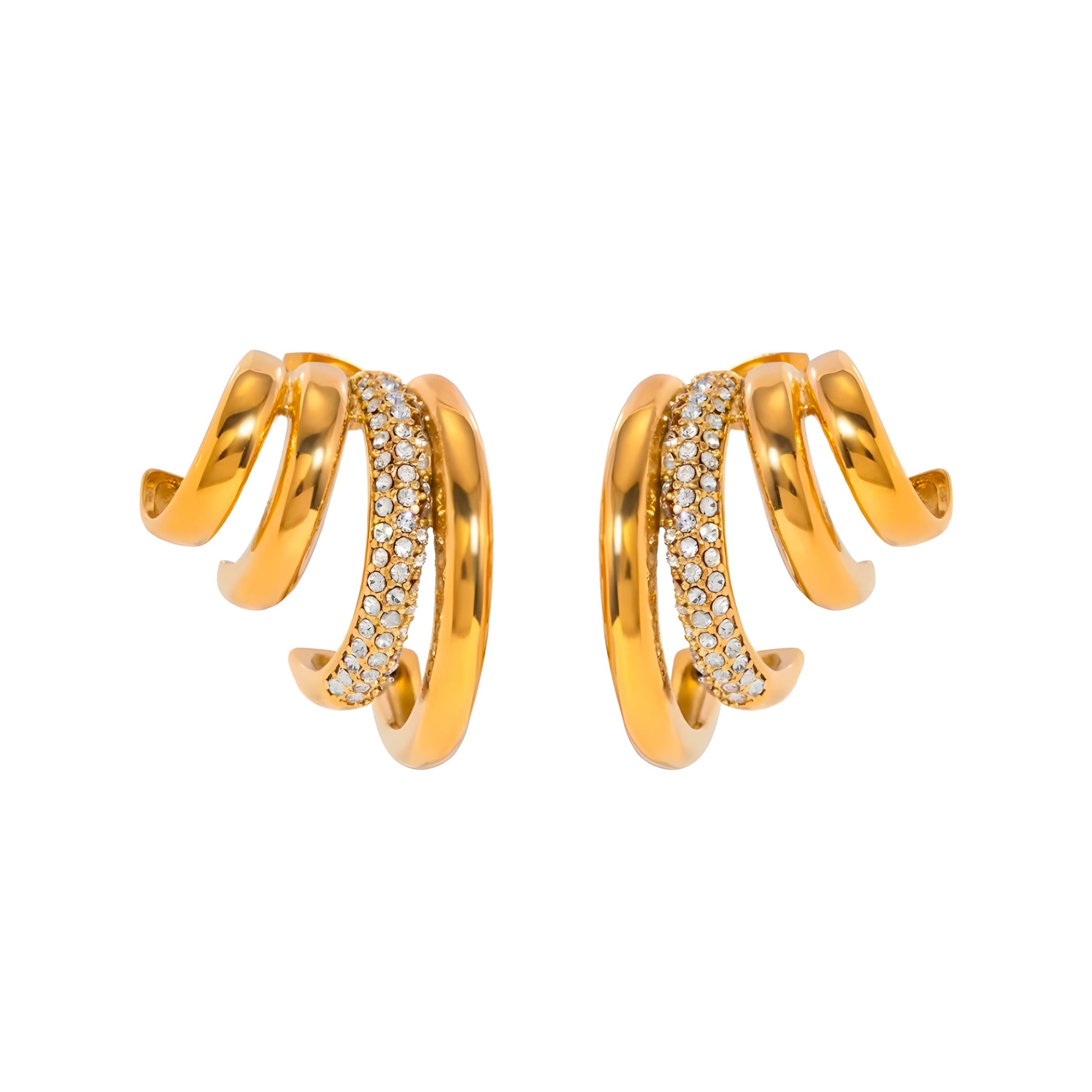 These stunning spiral hoop earrings from Behi Milano are a perfect blend of glamour and modern elegance. Crafted from high-quality gold-plated stainless steel, they feature an intricate twisted design adorned with shimmering crystals, creating a bold yet sophisticated statement. The unique spiral silhouette gives them a dynamic and eye-catching appeal, making them a must-have for any jewelry lover.