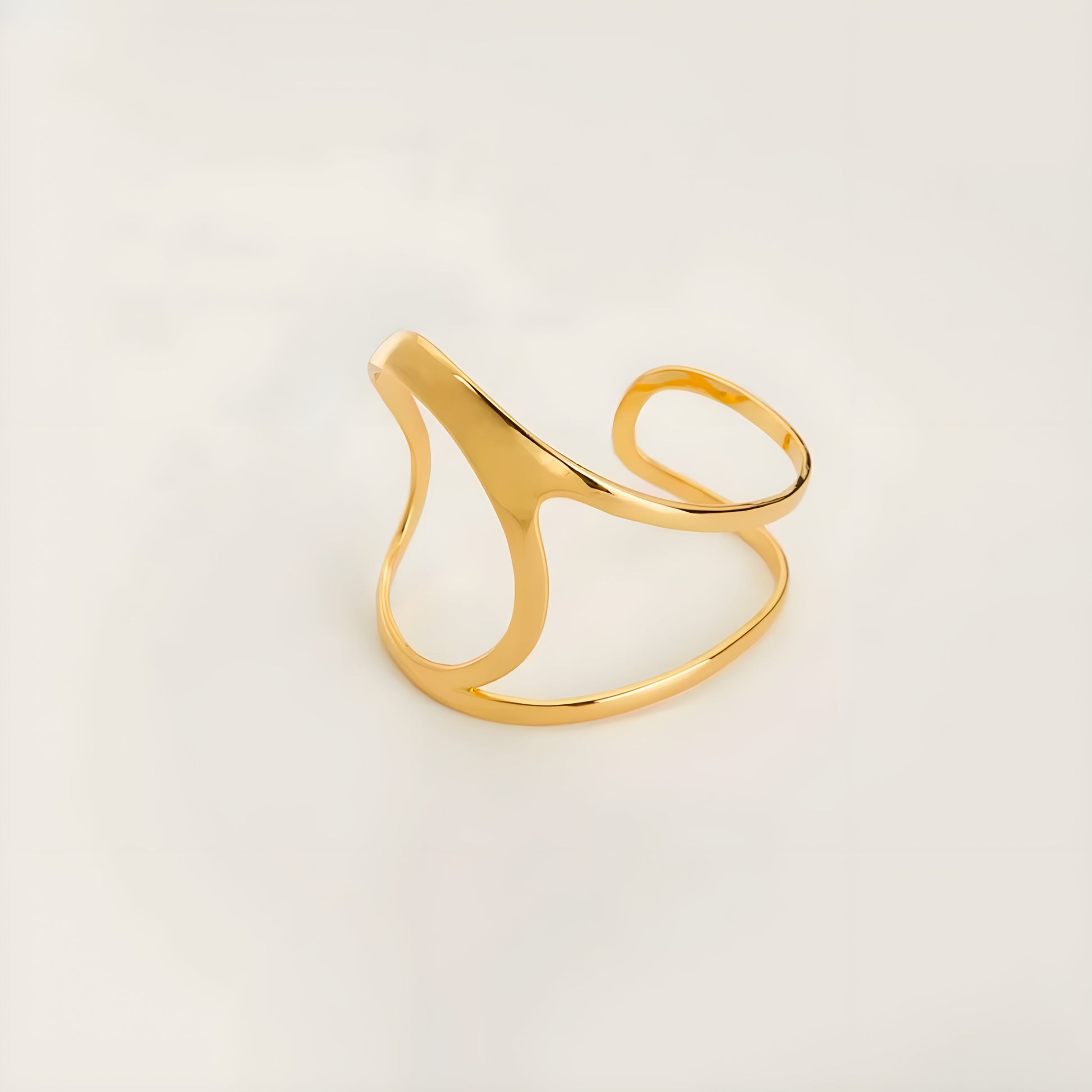 This bracelet from the BEHI Collection, features a bold and contemporary design, with sleek, polished gold bands that elegantly wrap around the wrist. The geometric shapes of the bands intertwine, creating a stunning and dynamic visual effect. The smooth, shiny finish enhances the modern, minimalist appeal, making this piece a perfect statement accessory for those who appreciate minimalist luxury. Its structure balances both strength and sophistication, making it an ideal choice for anyone who wants to stand out with an elegant yet edgy look.
