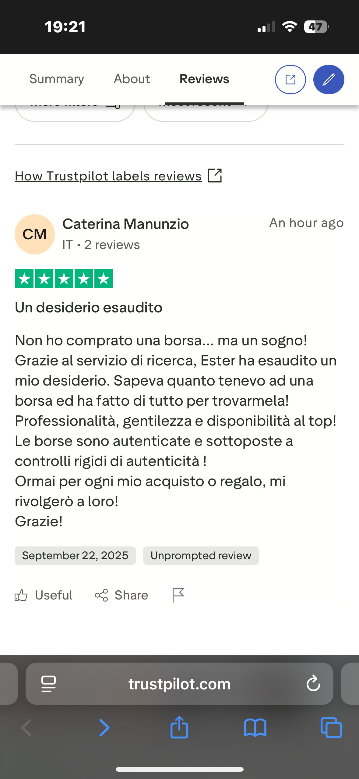 “Un acquisto che mi ha resa felicissima: professionalità e gentilezza impeccabili.”