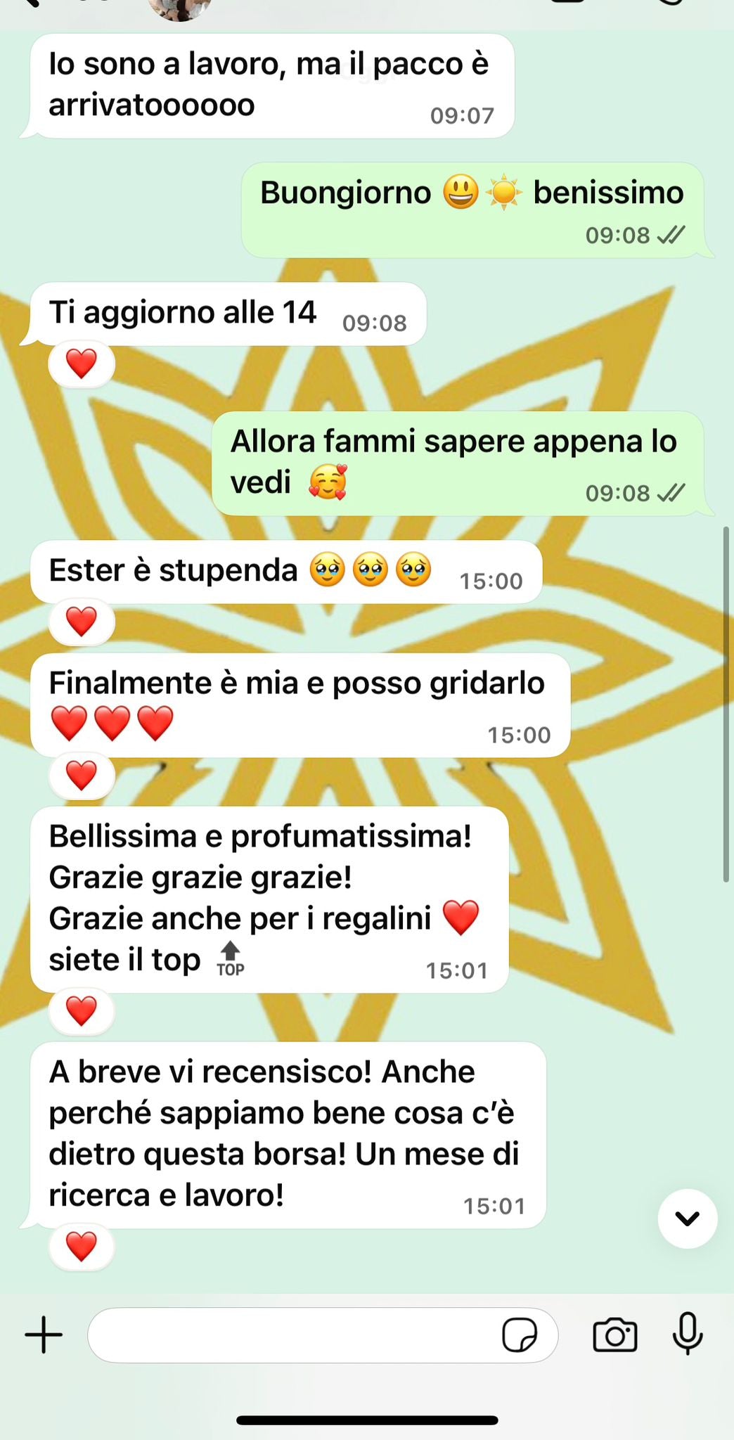"Non Posso descrivere la mia felicità e arrivata la mia borsa ,Bella 💖 come dalla descrizione. Non vedo l'ora di fare un alrto ordine. Grazie mille a presto 😘"