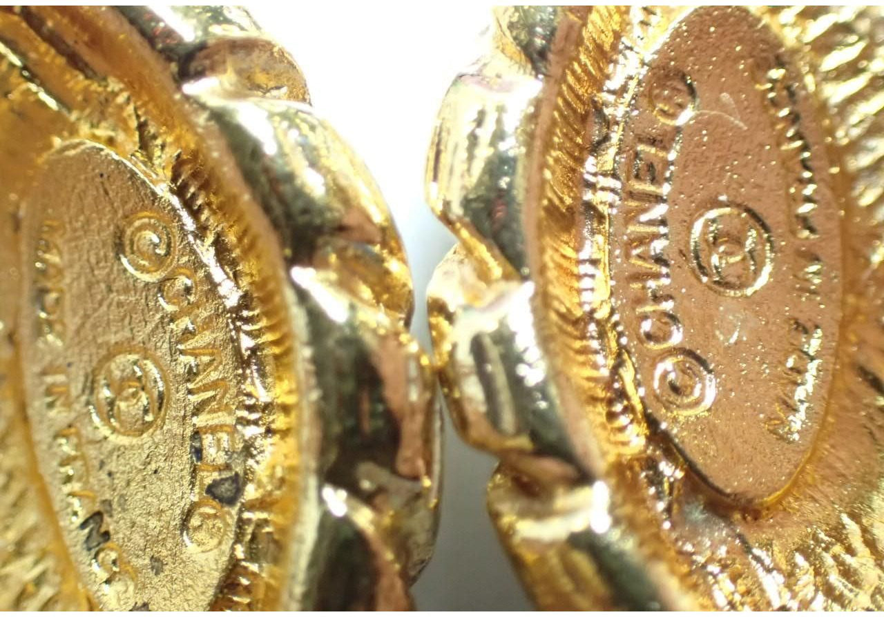 Iconici orecchini Chanel a clip, in metallo dorato con logo Coco Mark in rilievo. Un modello intramontabile, dal design anni '90, pensato per aggiungere un tocco di eleganza immediato a qualsiasi look. La finitura dorata conserva una buona luminosità, con piccole graffiature e micro segni superficiali compatibili con l'uso.