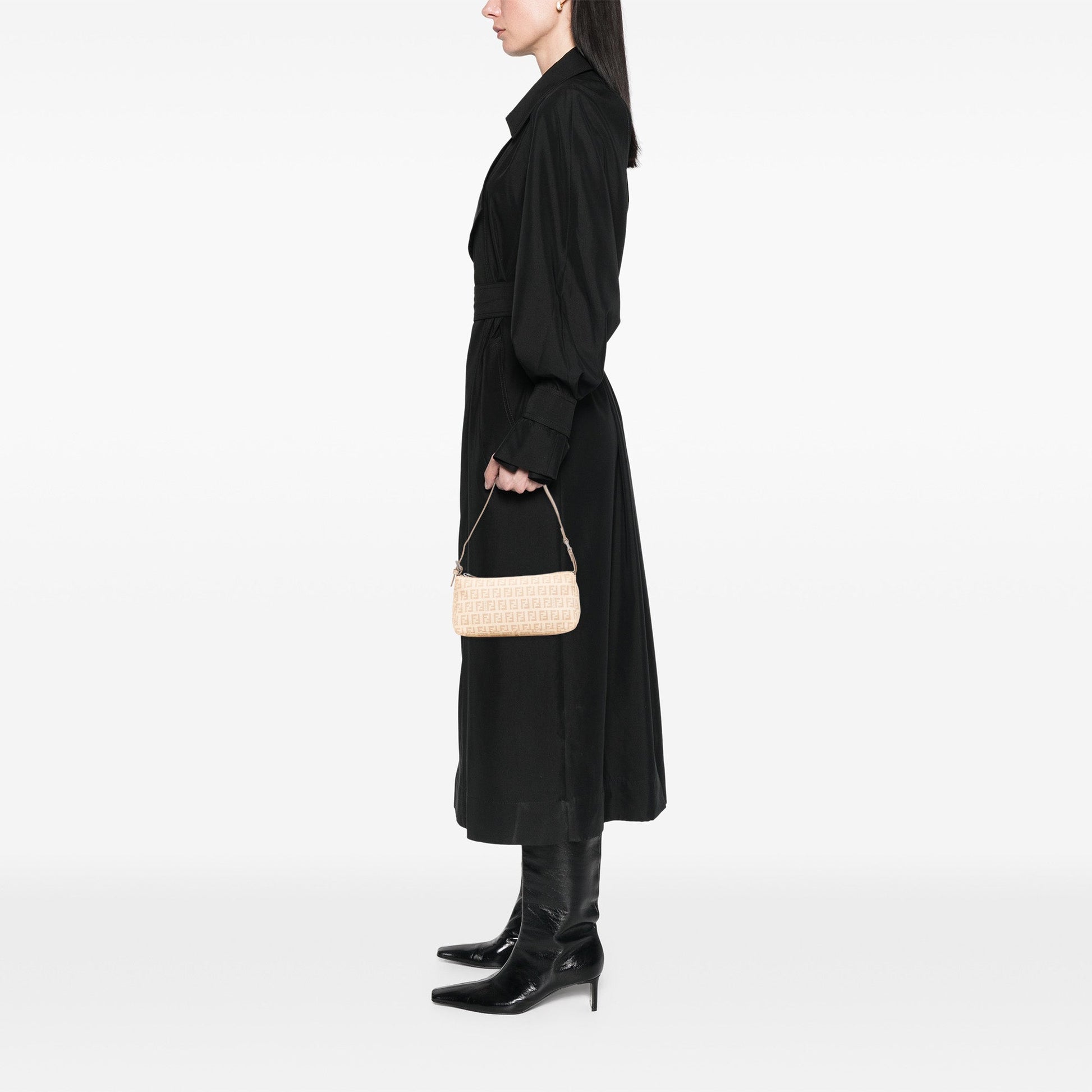 Icona essenziale della fine anni ’90, questa Fendi Baguette in versione mini conserva tutta la grinta del logo Zucchino, reinterpretato in una tonalità neutra e versatile. Un modello leggero, pratico, perfetto da portare a spalla o da aggiungere come accessorio di styling ai look contemporanei.