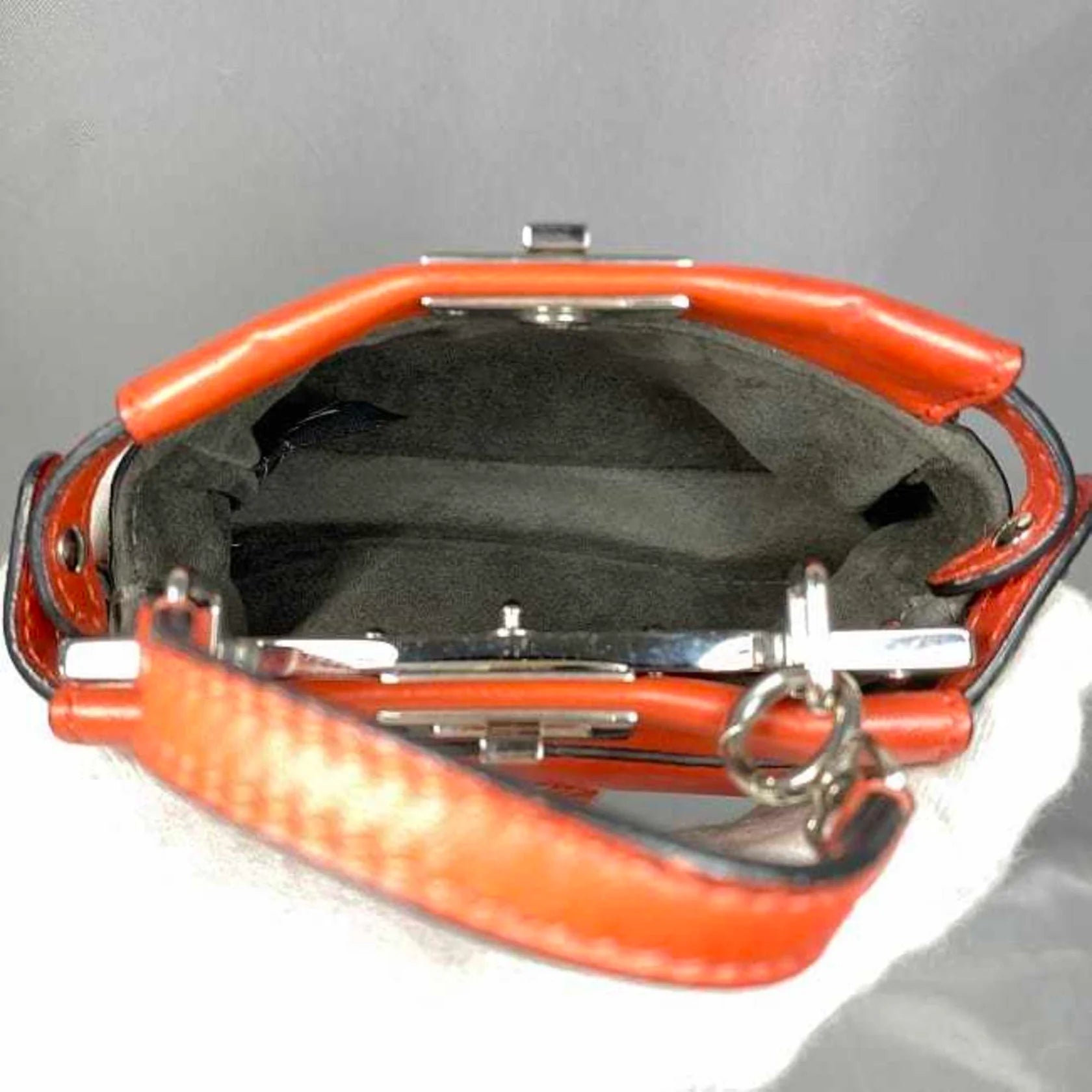 Realizzata in pelle rossa liscia, presenta una silhouette compatta e scultorea, arricchita da hardware argento lucido e dall’iconica chiusura a girello Fendi.