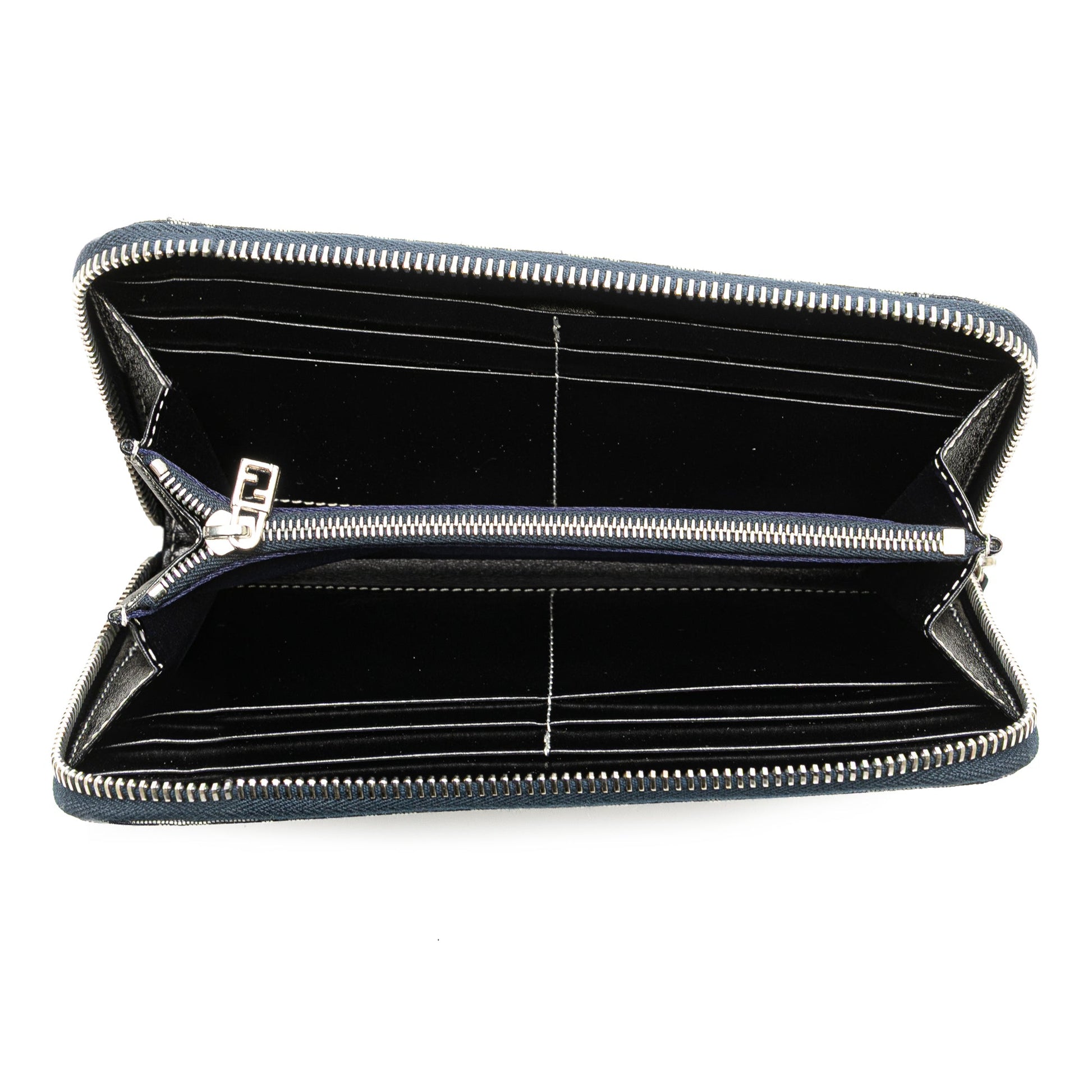 Fendi Portafoglio Zip-Around in Tela FF Zucca Blu – 2000s