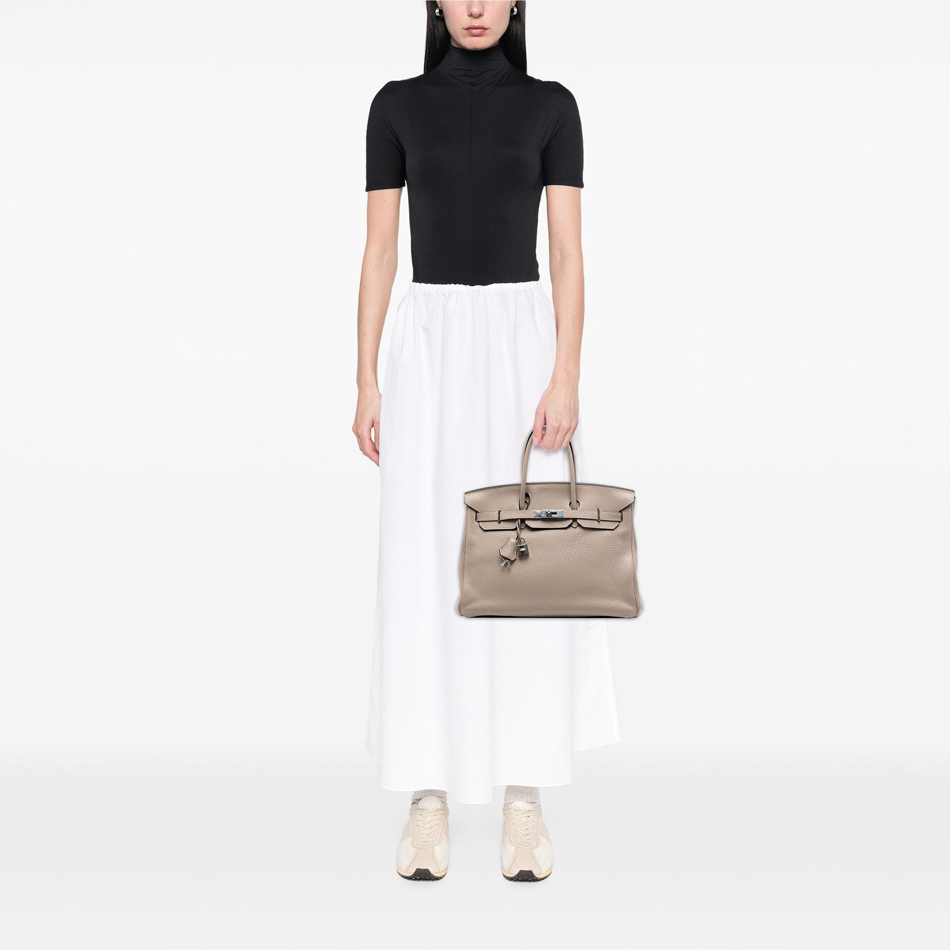 La Birkin 35 in pelle Togo color Gris Tourterelle è una delle configurazioni più ricercate e stabili del mercato del lusso pre-owned. Il Gris Tourterelle — un grigio-beige caldo, neutro e mai banale — è uno dei colori Hermès con la domanda più costante nel tempo, apprezzato per la sua capacità di adattarsi a qualsiasi guardaroba senza mai passare in secondo piano.