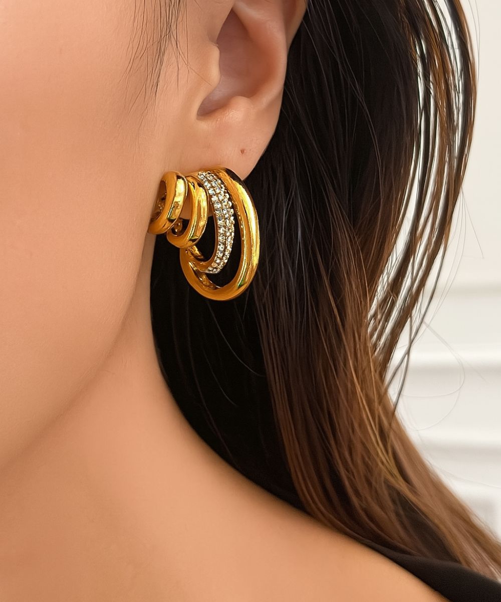 L'orecchino Sally è un accessorio raffinato e distintivo, caratterizzato da più cerchi sovrapposti che creano un design dinamico e moderno. Uno dei cerchi è impreziosito da brillantini scintillanti, che donano un tocco di luce e eleganza. Perfetto per chi cerca un dettaglio unico e sofisticato, questo orecchino singolo valorizza ogni look con stile e personalità. Indossalo per brillare in ogni occasione con un tocco di classe contemporanea.