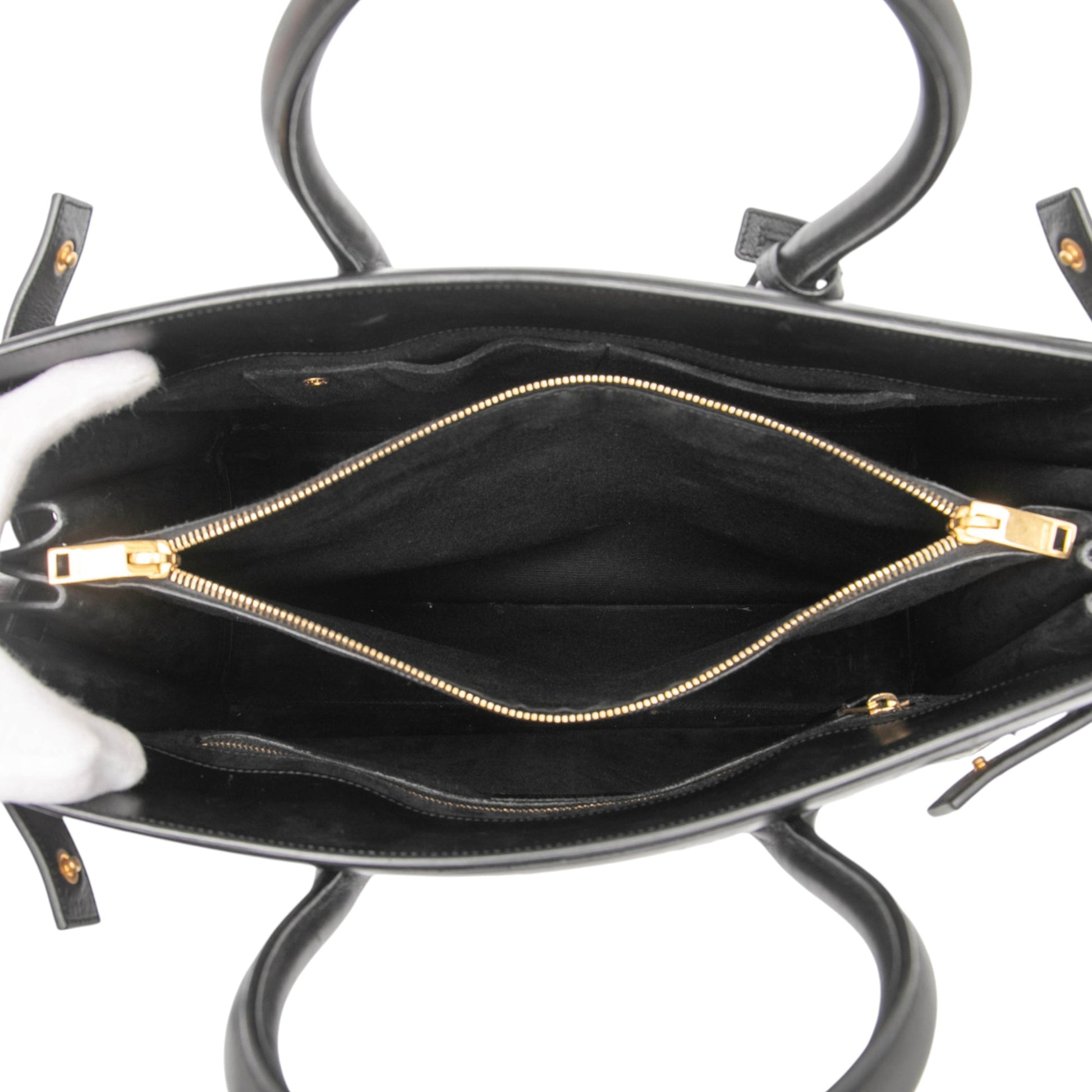 Interno: Scomparto centrale con zip, tasche interne aperte + zip